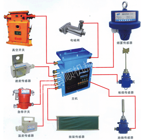 1、具有皮帶機低速、超溫、煙霧、滿倉、堆煤、跑偏、撕帶等縮合保護功能;
